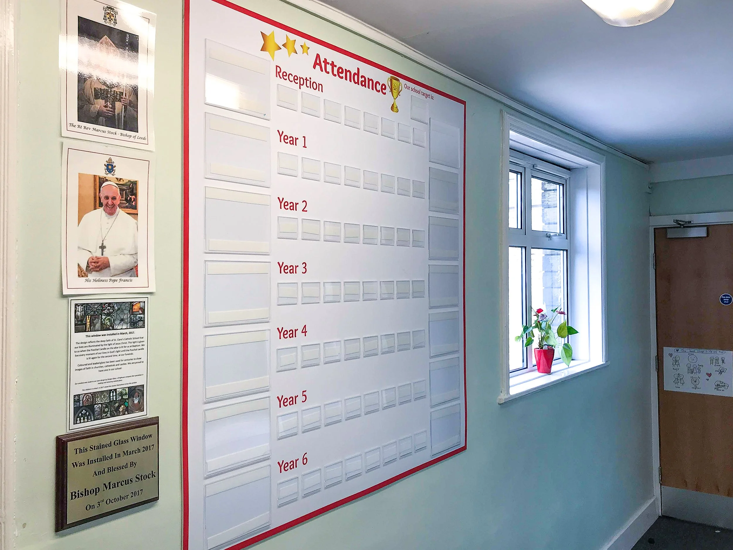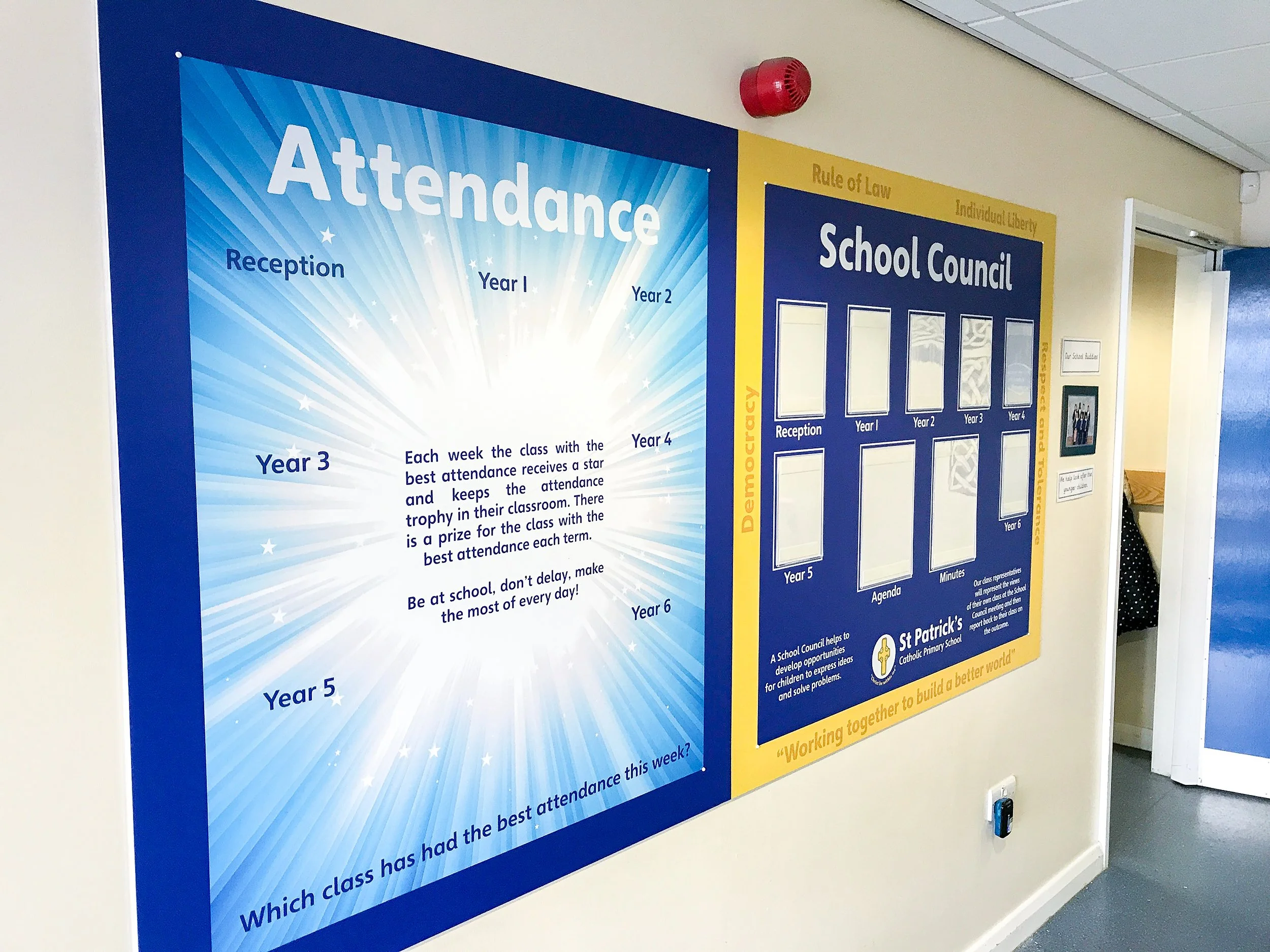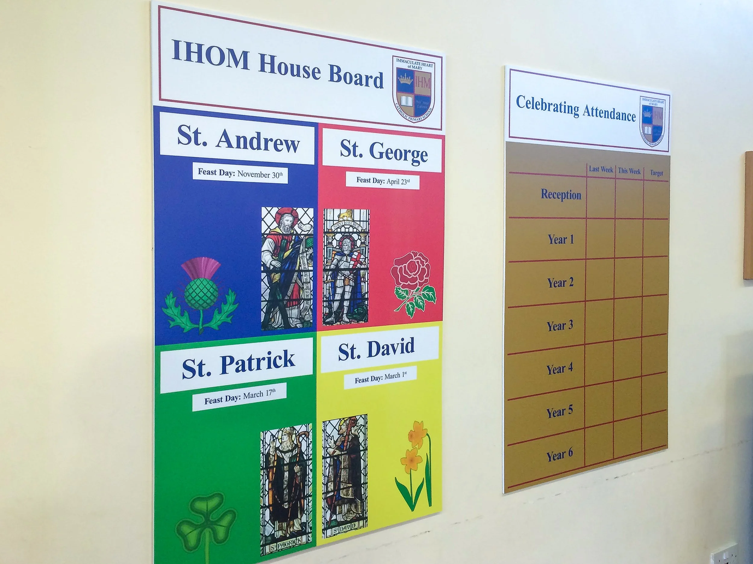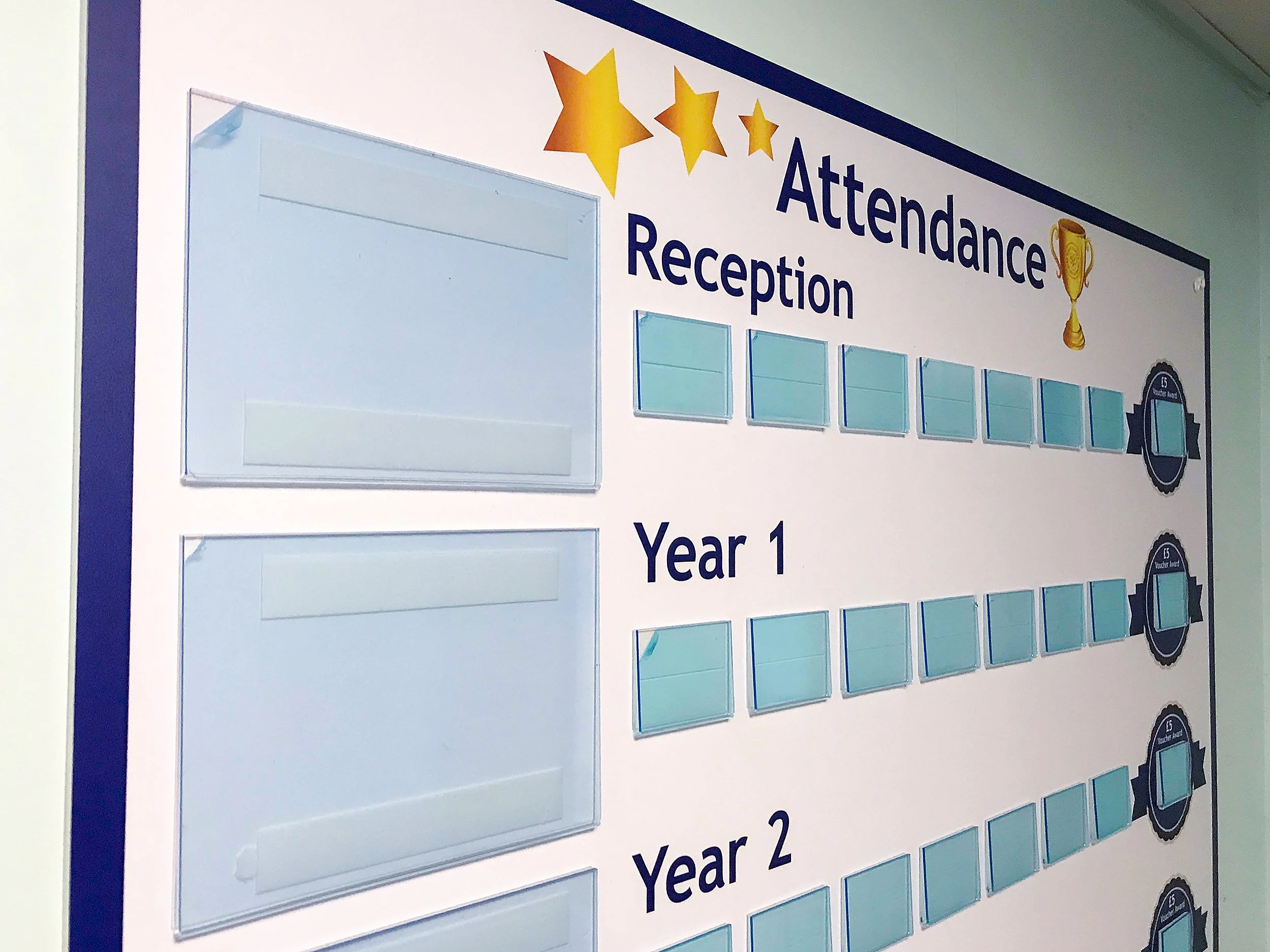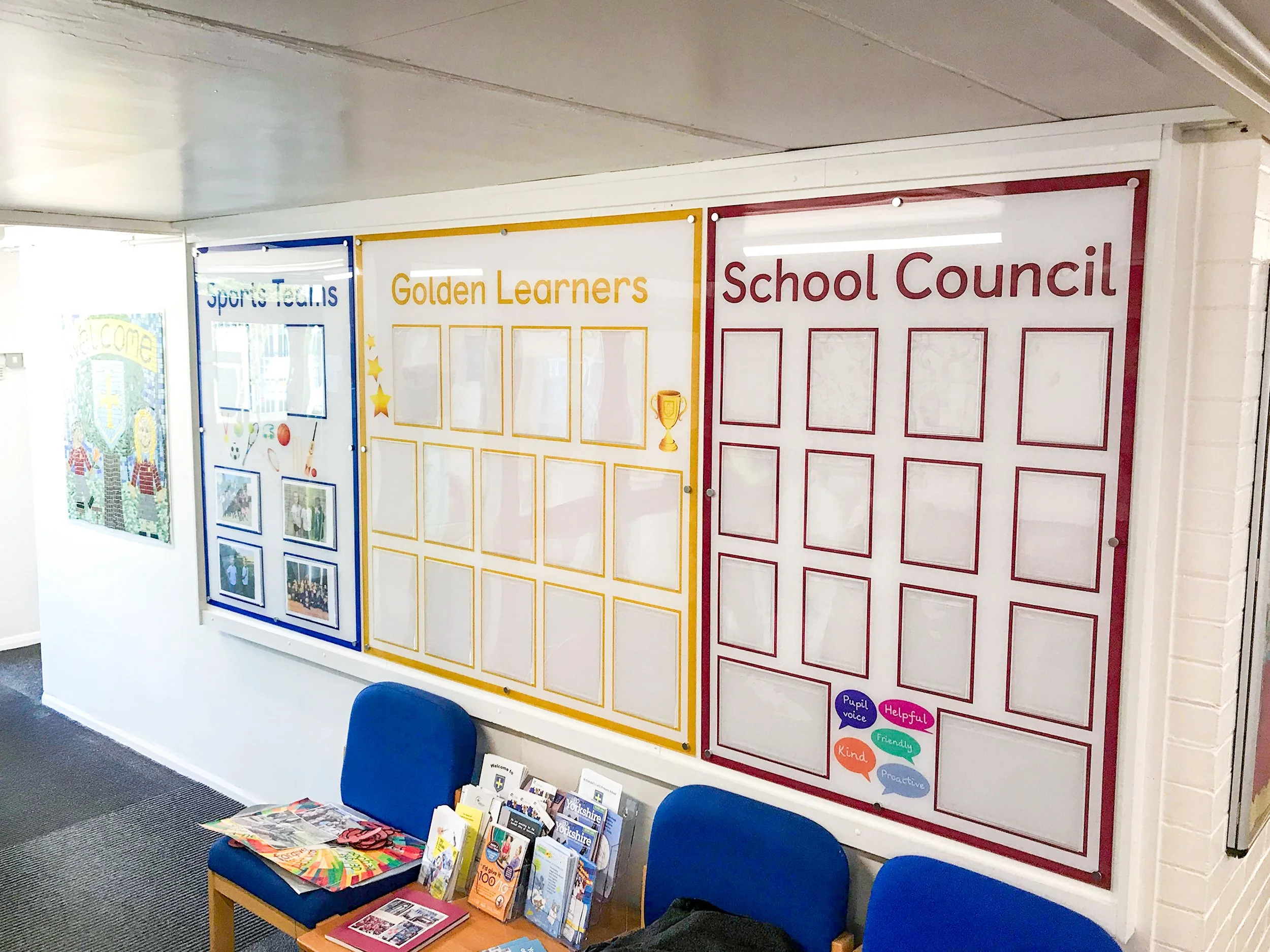 Attendance and School Council boards Foamex panels with acrylic document holders