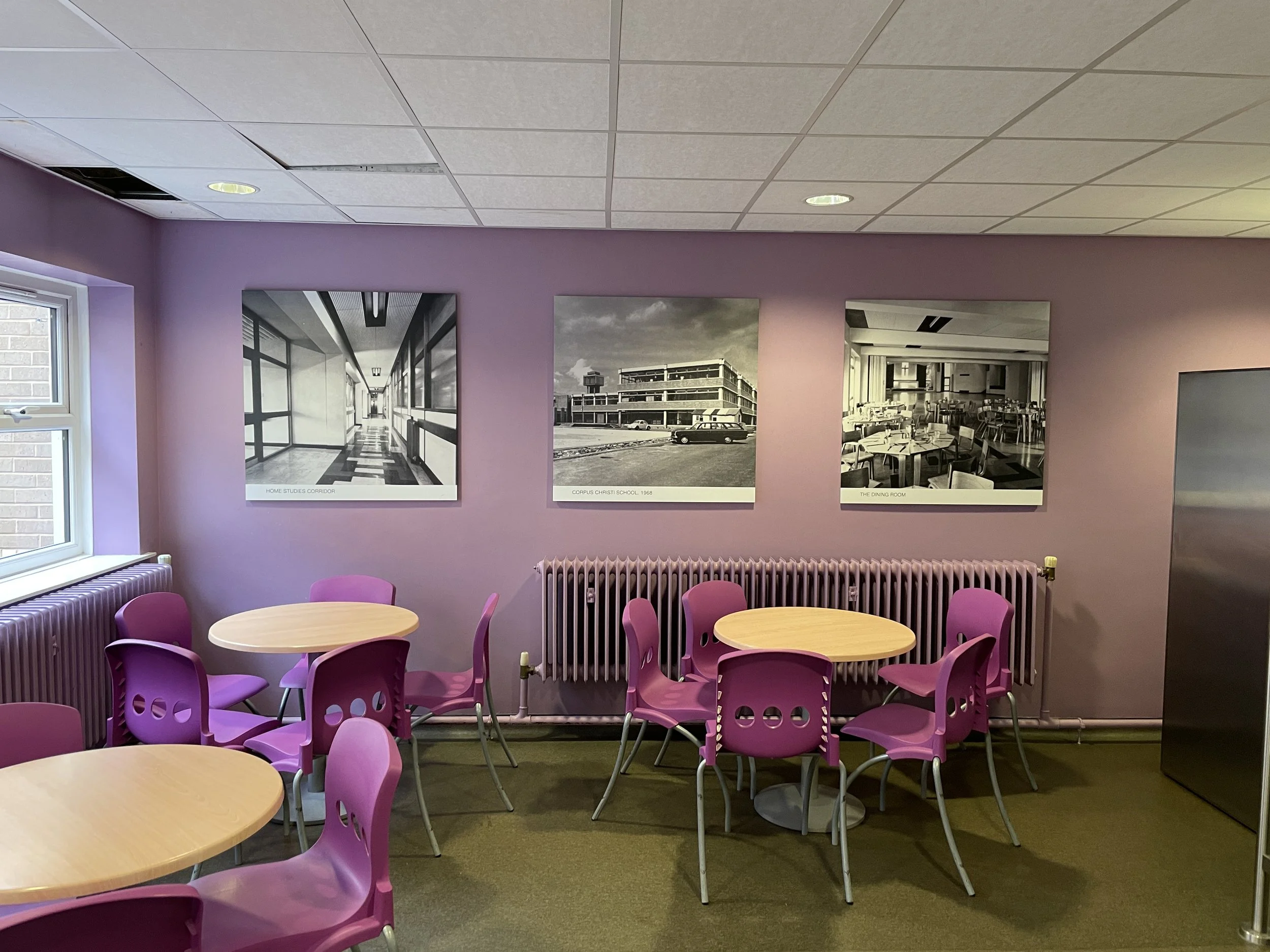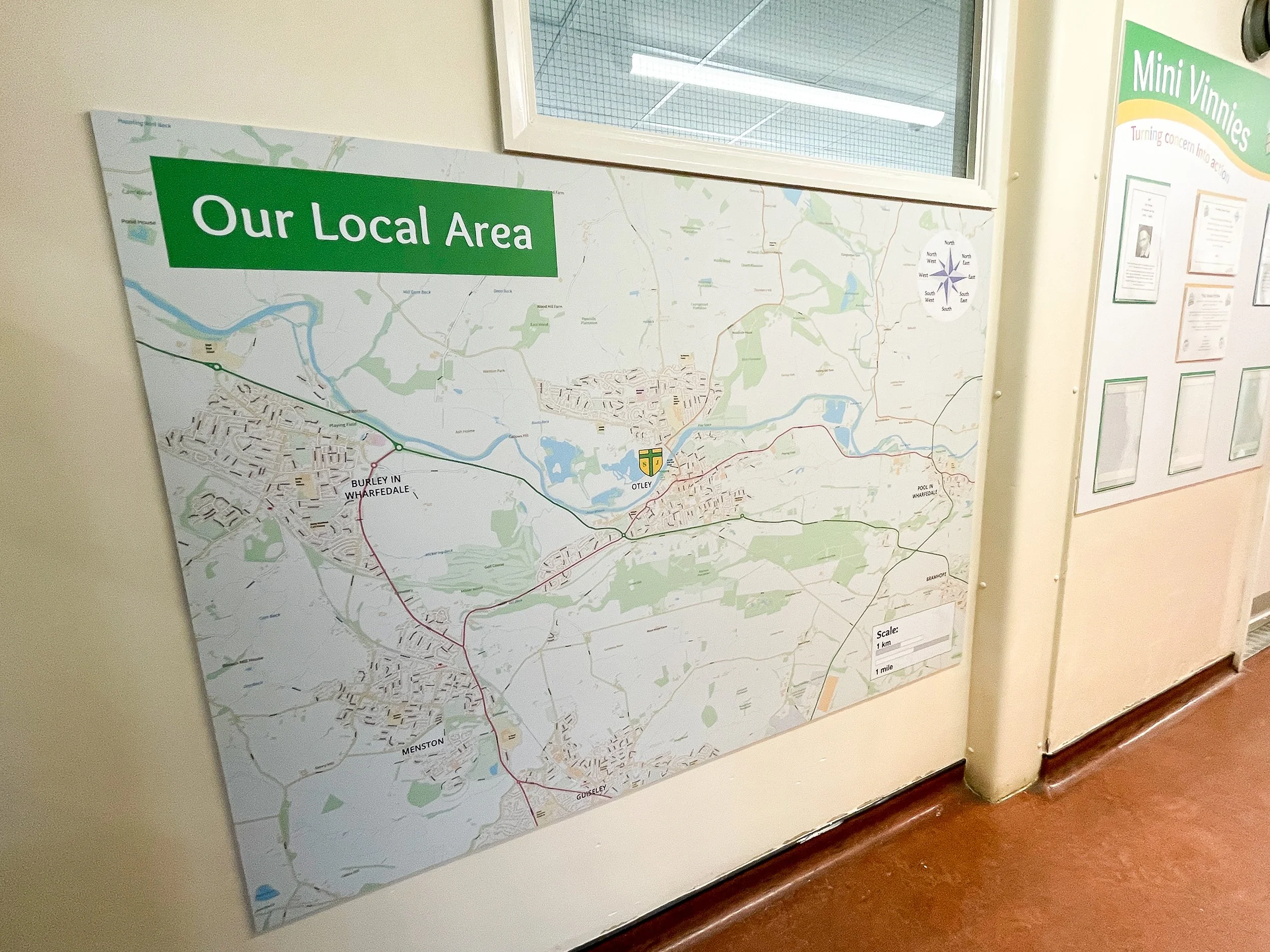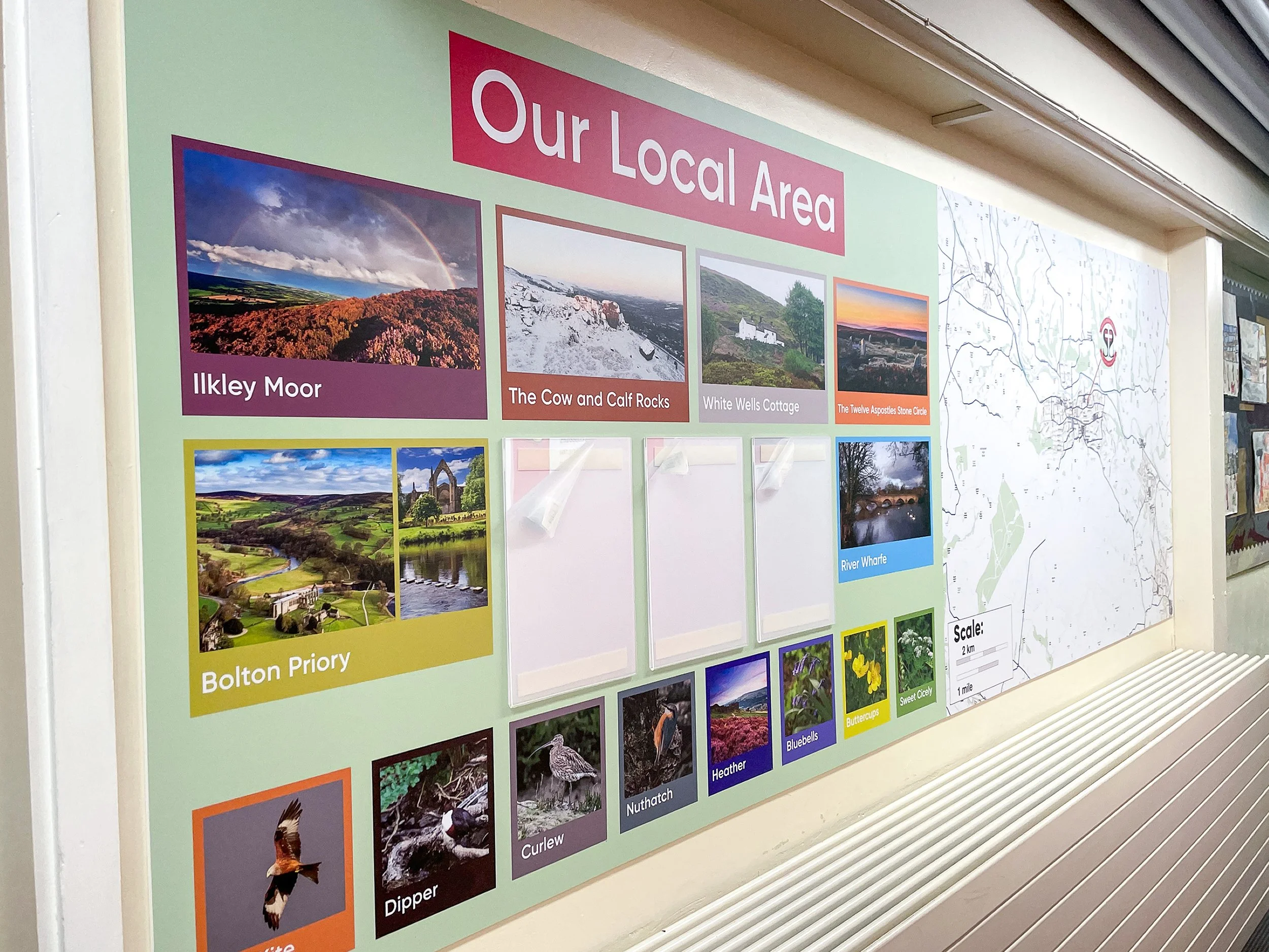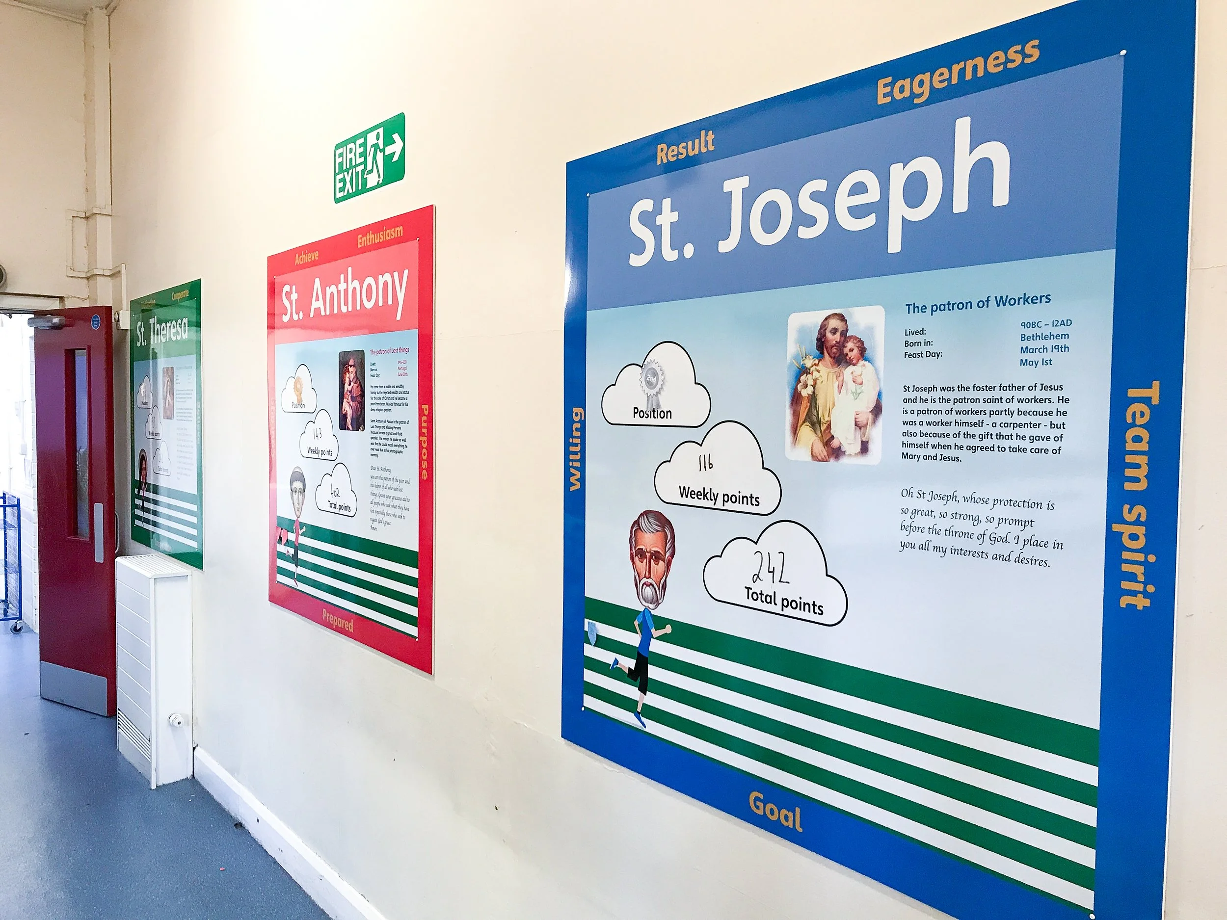 Acrylic panel with acrylic document holders and standoff fixings used in school entrance area
