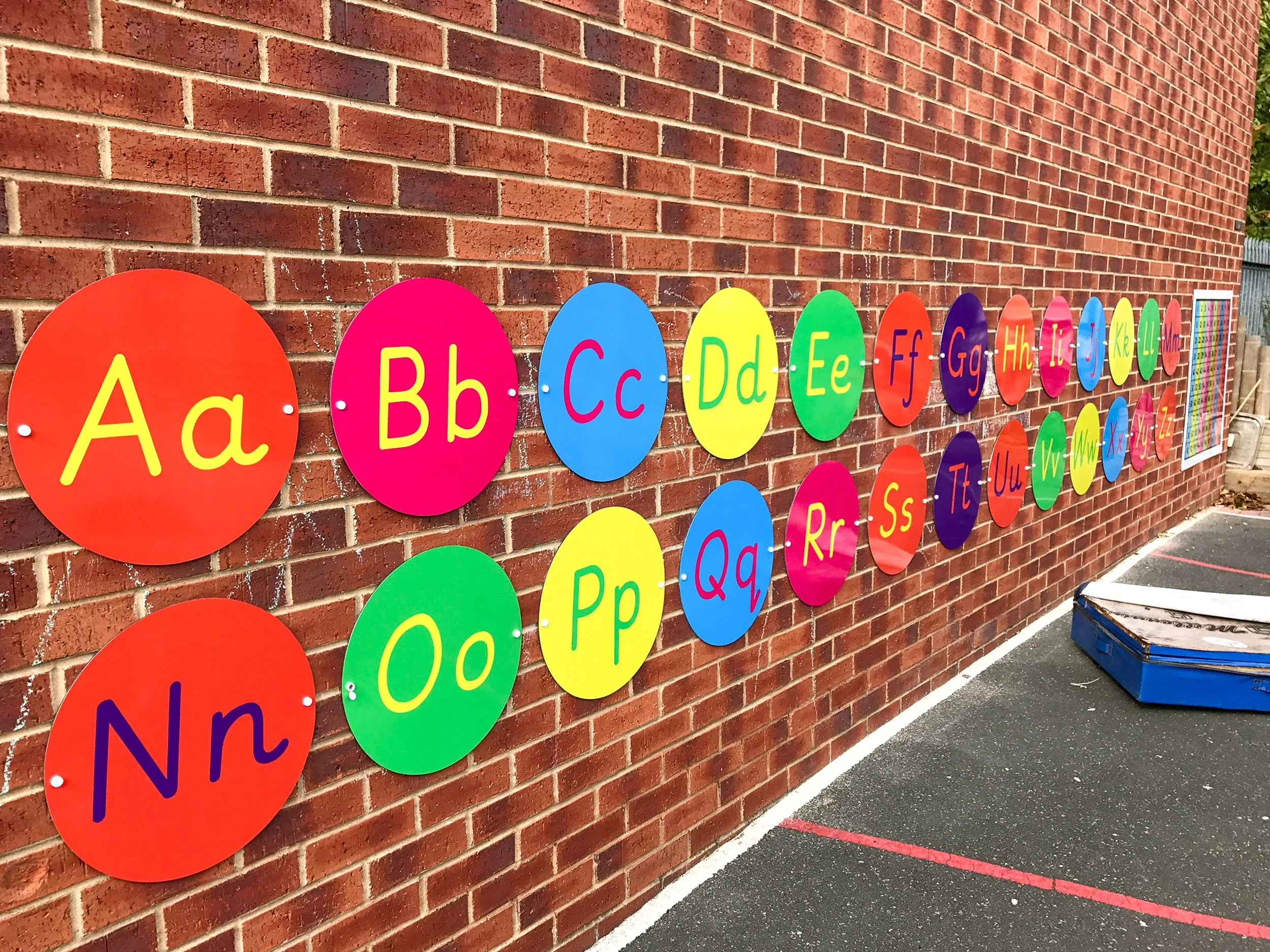EYFS (Early Years Foundation Stage) letters on Fence dibond panels