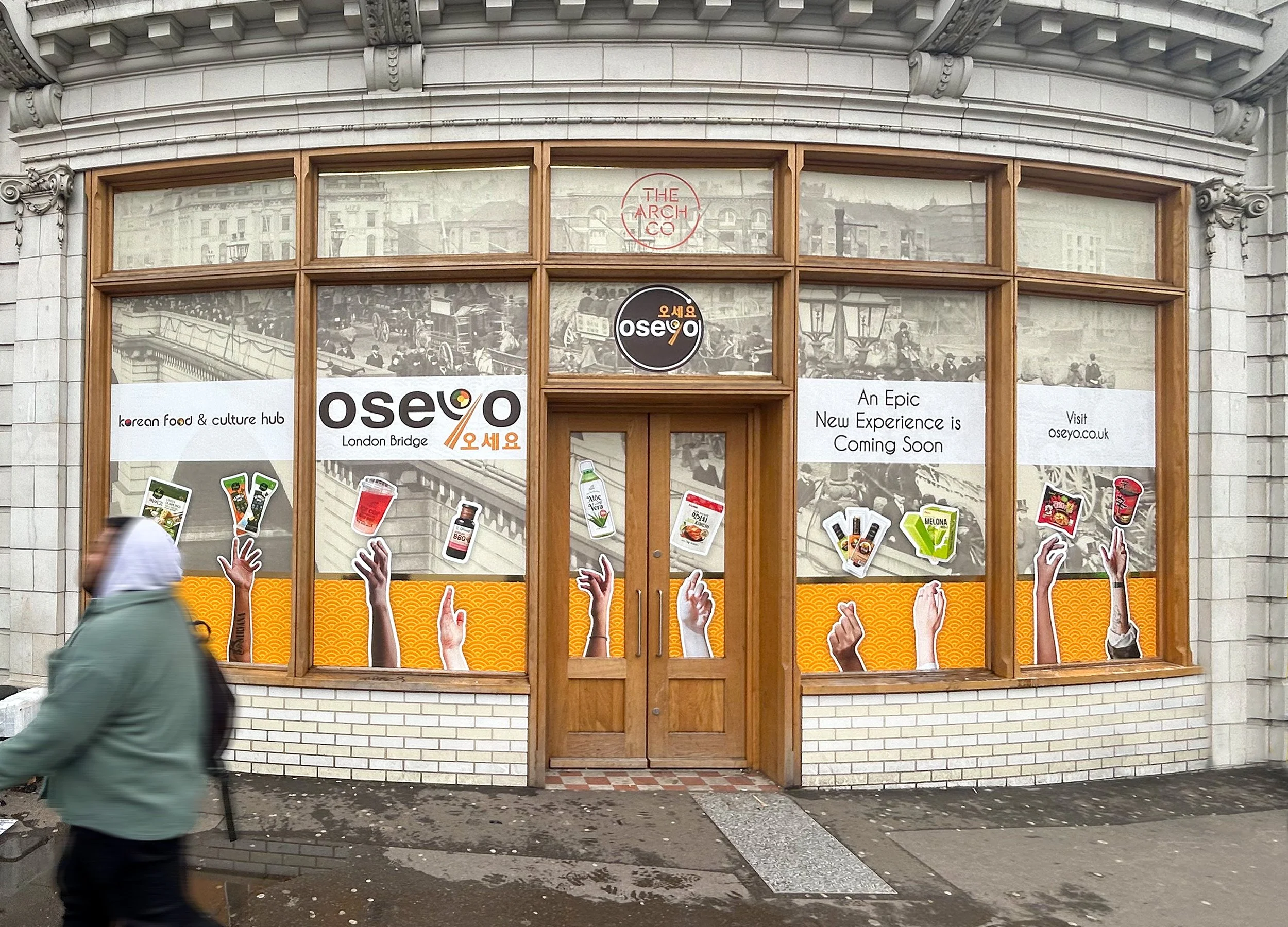 Full colour printed vinyl with a protective matt or gloss laminate. Exterior installation and applied to the face of the windows. Ideal for commercial retail windows. Window vinyl can be used for a permanent installation or removable for short term promotional use as a one off event.